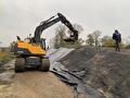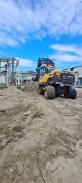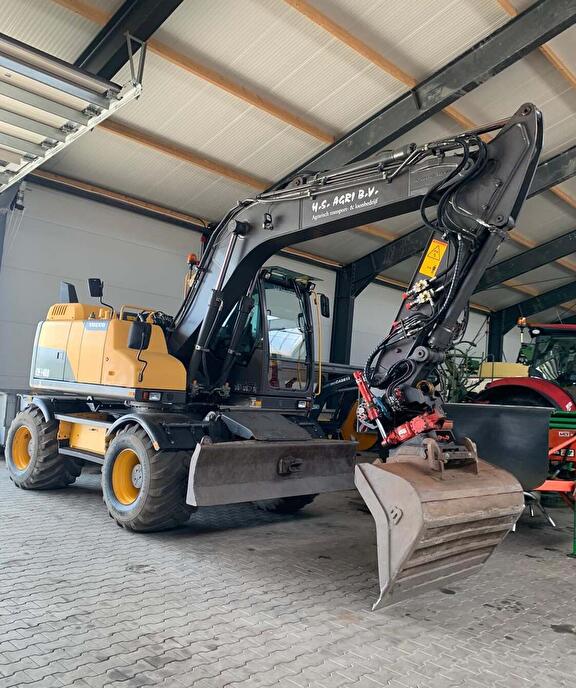 Voor grondverzetwerkzaamheden beschikt H.S. AGRI onderandere over een mobiele kraan van het merk Volvo, type EW140D.
